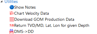 Highlights the features on the map which contain Notes associated with them. Notes can be accessed and created using the hotlink tool. - Chart Velocity Data: