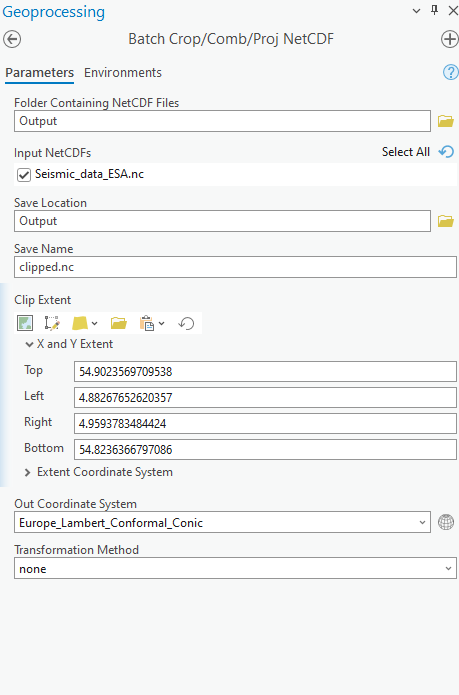 - The next section provides a variety of options to clip or combine the NetCDF(s), including the whole visible section to drawing a box of the desired area to using another file to clip the extent.